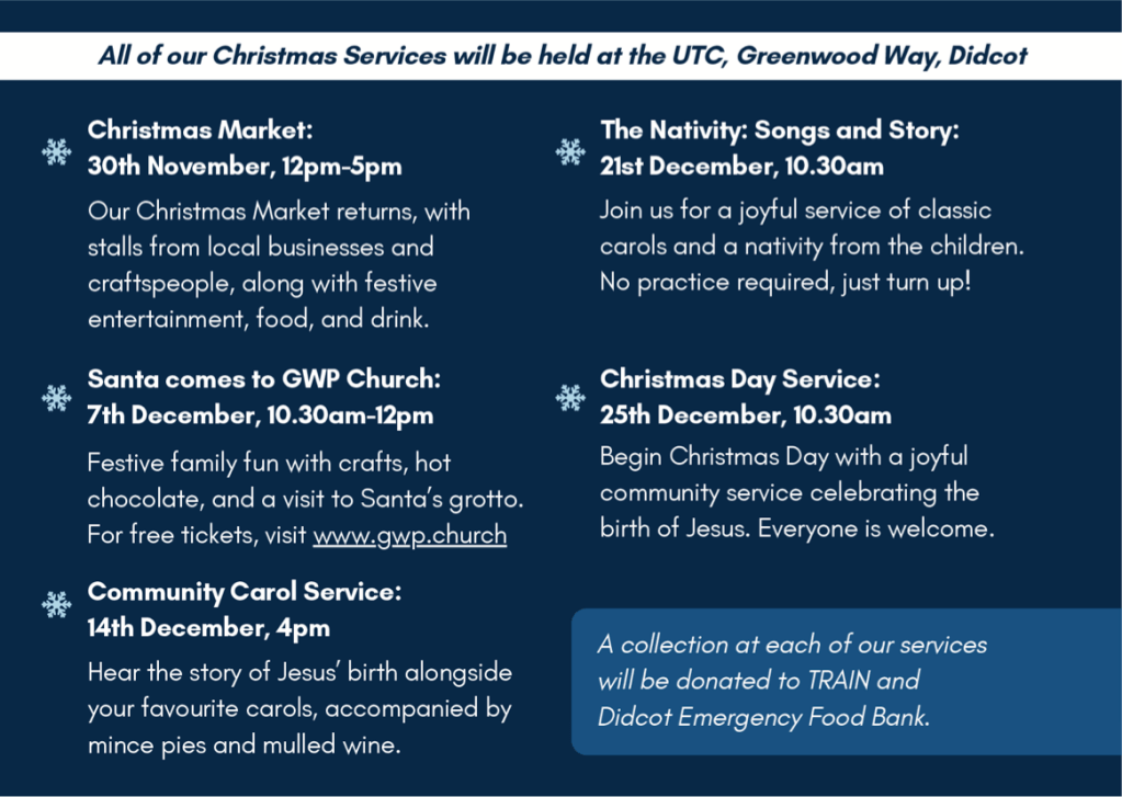 Join us in the UTC at 10.30AM for a joyful service of classic carols and a nativity from the children. No practise required: just turn up!